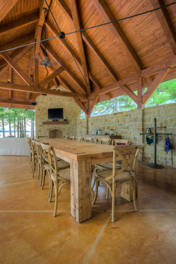 The table you see here is a big one—12 feet long! But since we build them to order, we can do a custom length to fit your kitchen, dining room, or Dining Pavilion. We finish them with Heritage Natural Finishes, a 100% natural oil finish made by a friend of ours. It’s FDA-certified food safe and nontoxic, and it really is the best finish for wood I’ve come across. It protects the wood while letting it breathe, and you can replenish it yourself as your reclaimed wood table is used.