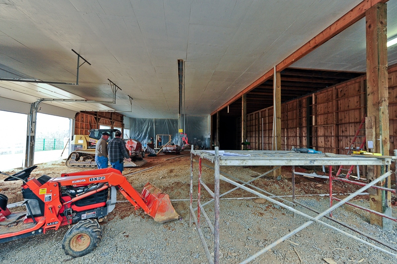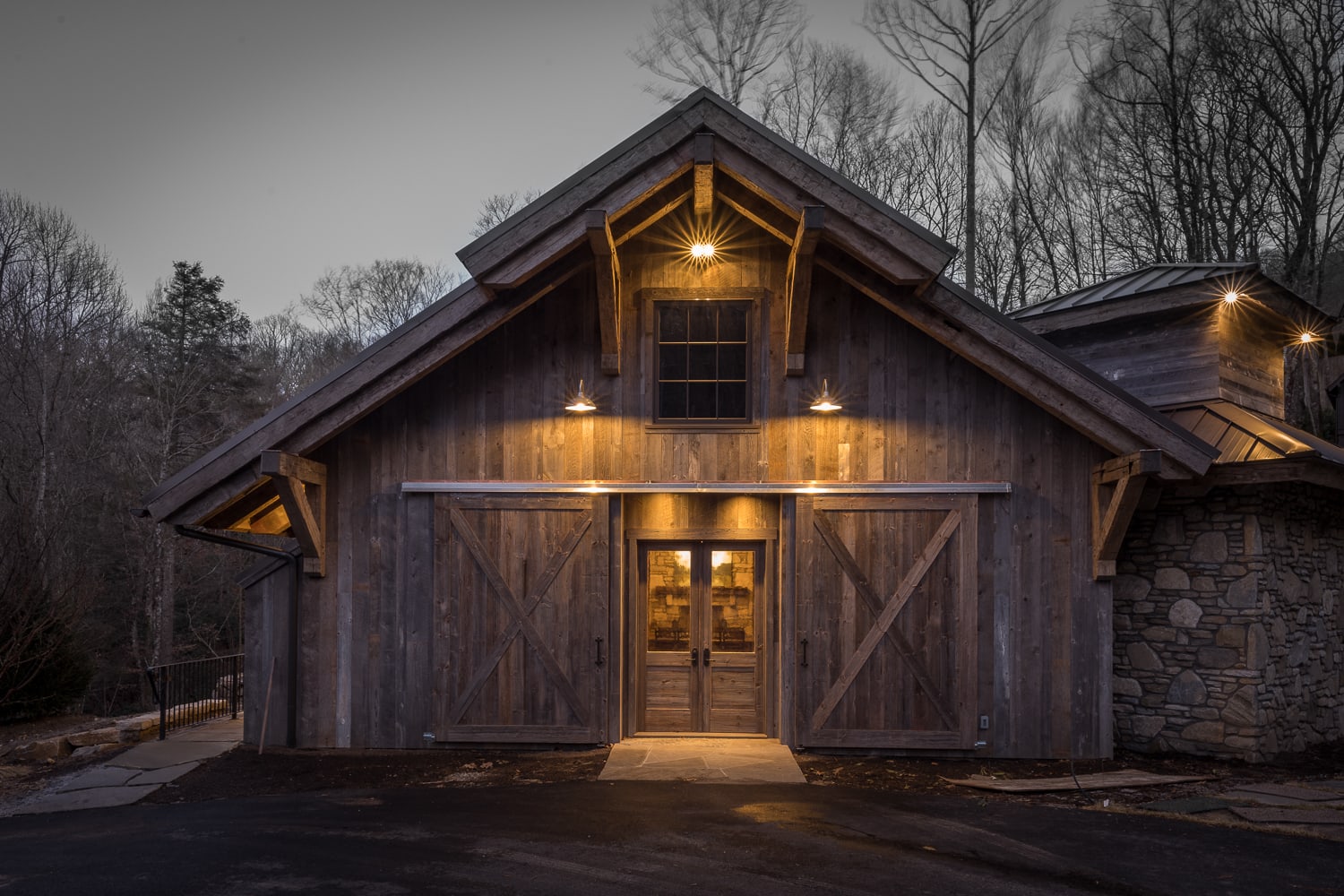 So began our involvement with Jim and Betty Becher’s fast track project to convert their existing cattle barn into a party barn. Betty and Jim’s inspiration to build a party barn came from a visit to Blackberry Farm in Tennessee, and the fast track part of the project came from Betty’s approaching birthday party deadline.