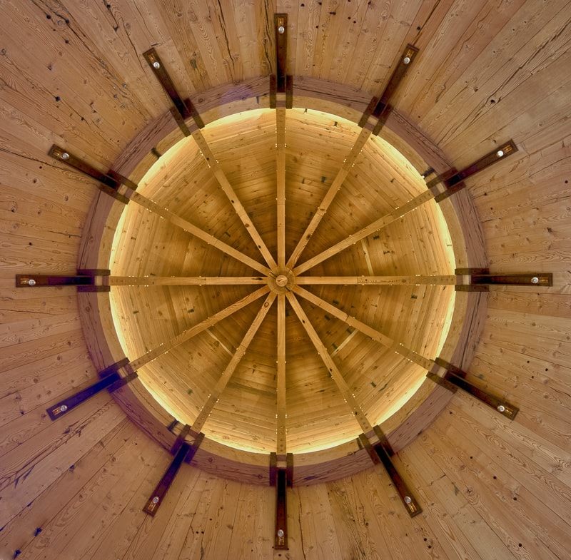 Three years later, it was decided that the party barn needed a silo. We built the timber framed domed silo roof from Douglas Fir reclaimed from the San Diego and Arizona Eastern Railway, better known as “The Impossible Railroad.” Built between 1907 – 1919, the construction of this 146-mile long railroad from San Diego to El Centro to the east overcame a series of catastrophes and misfortunes including, but not limited to, the Mexican Revolution, a prolonged legal battle, floods, World War I, labor shortages, tunnel collapses, and a pandemic thrown in for good measure.