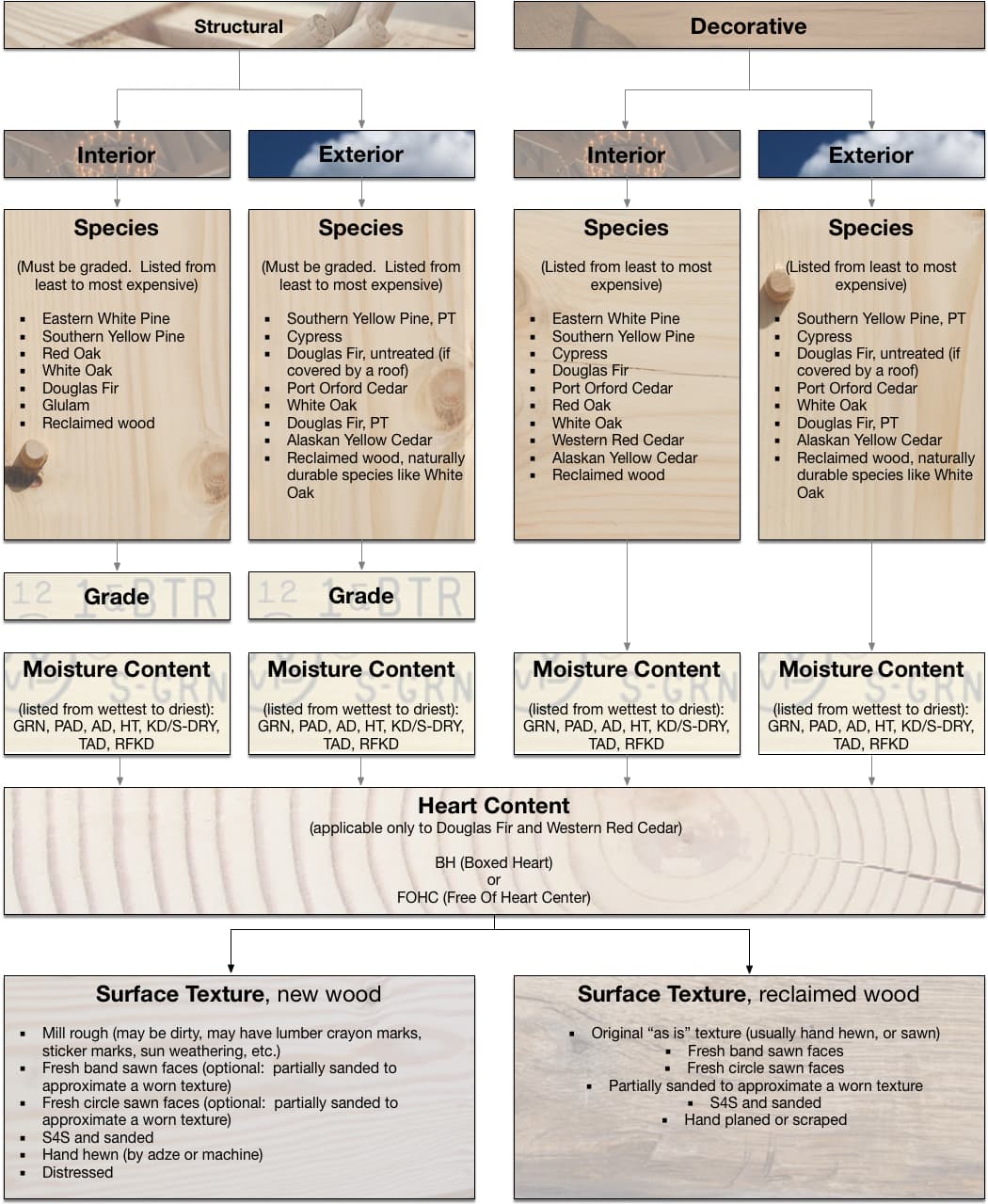 So, here in one place, is exactly how to select a timber species from the most common woods used in timber framing. Perhaps as important, you’ll learn how to specify the other important wood characteristics for a timber frame — things like timber grade, moisture content, heart content, and surface texture.